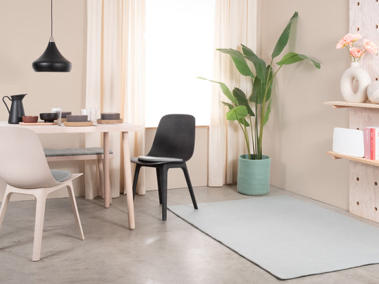 Liv is a felt rug in cool light blue. It brings clarity and lightness into the room and makes small spaces appear larger. Matches well with white, oak, and neutral tones – as a calm foundation or a fresh accent. Soft, sound-absorbing, and naturally dirt-repellent. Handmade in Nepal from 100% pure new wool.