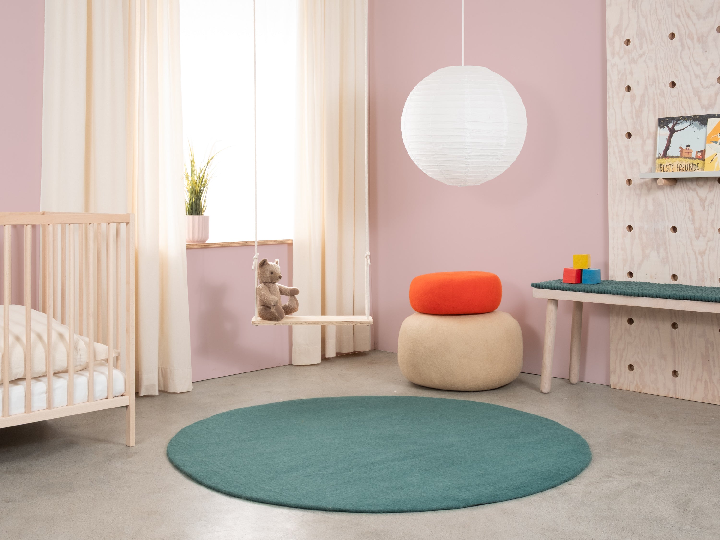 Noah is a felt ball rug in deep petrol. Powerful, clear and still relaxing—use as a statement piece or a quiet base. Works with light wood, concrete and neutral colours. Noticeably soft, durable and easy to care for. Handcrafted in Nepal from 100% pure new wool.