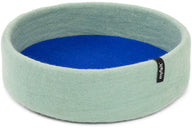 Handmade turquoise-coloured cat basket made from 100% New Zealand pure new wool.