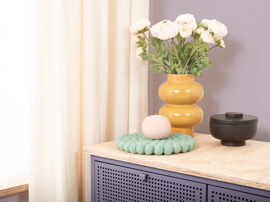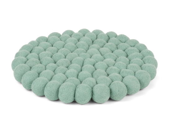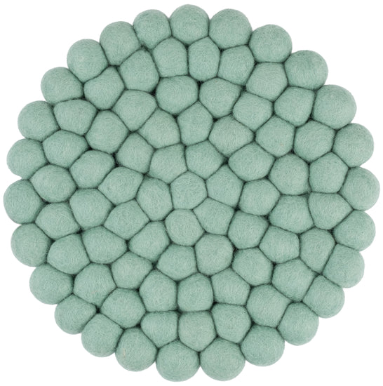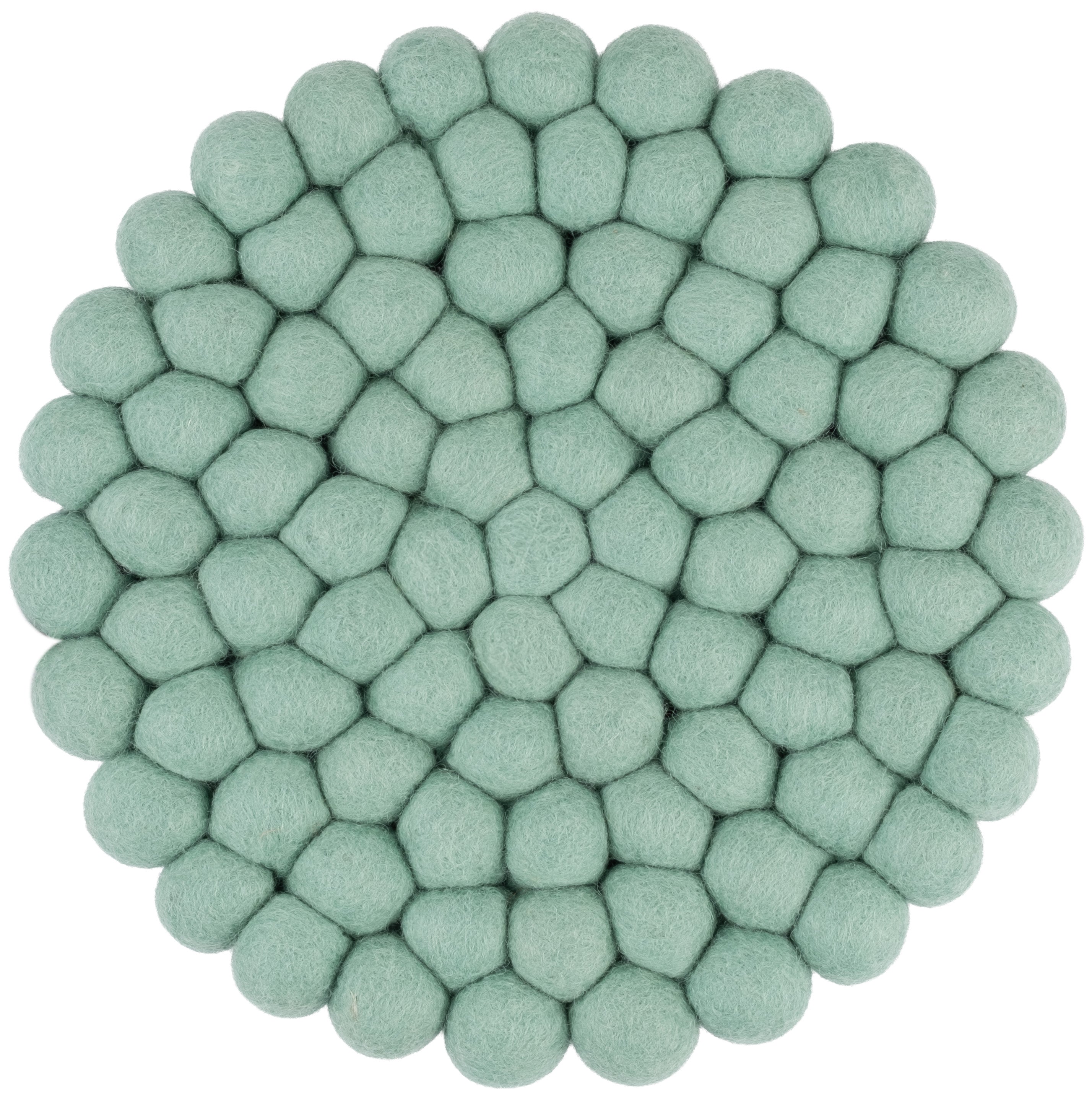 Round, turquoise-coloured trivet made of pure new wool | myfelt