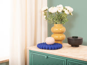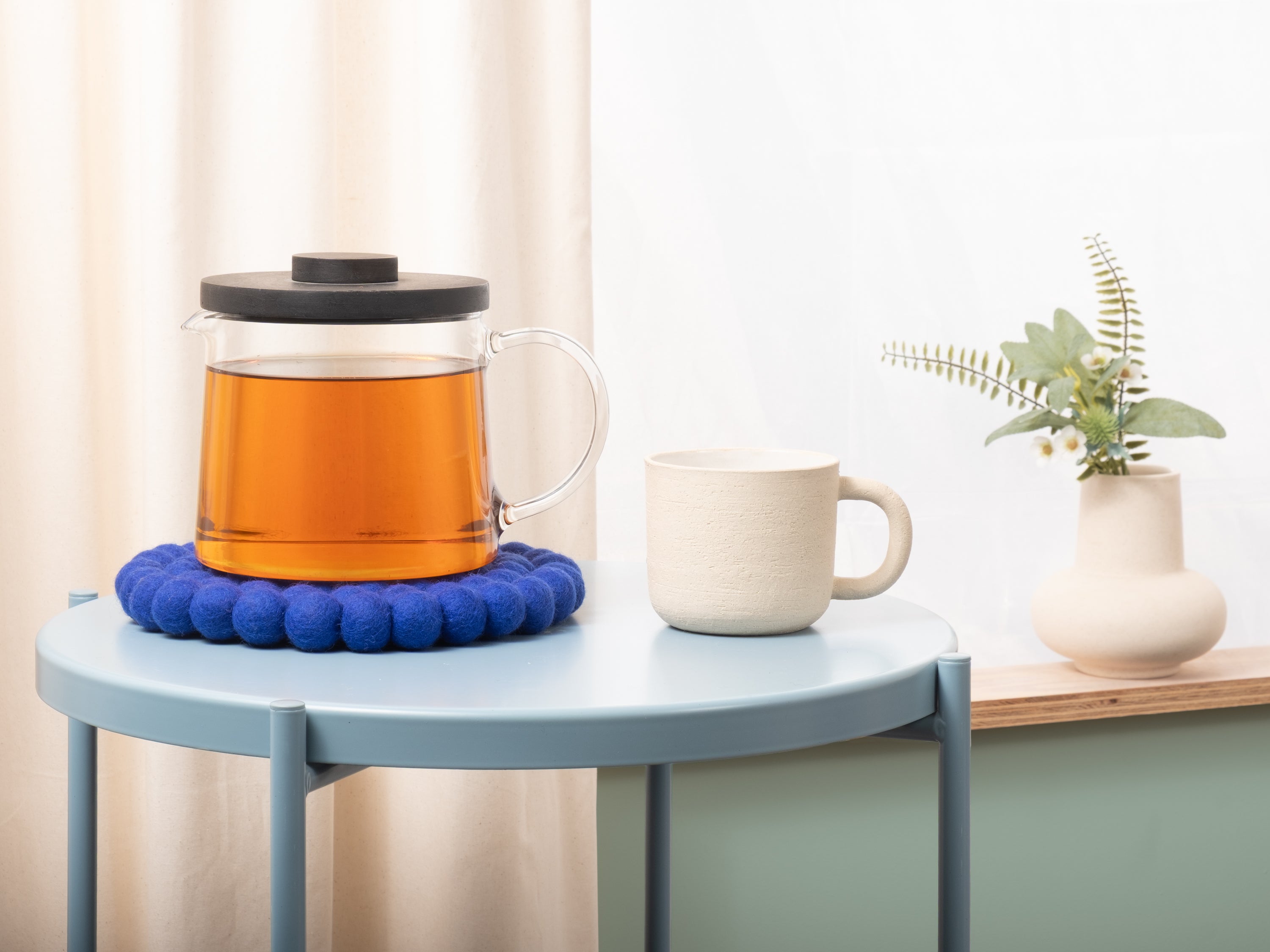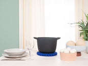 The trivet Isa in the colour royal blue combines functionality with charming design. Robust, heat-resistant, water- and dirt-repellent, and reversible. Made from pure new wool, handcrafted in Nepal under fair conditions.