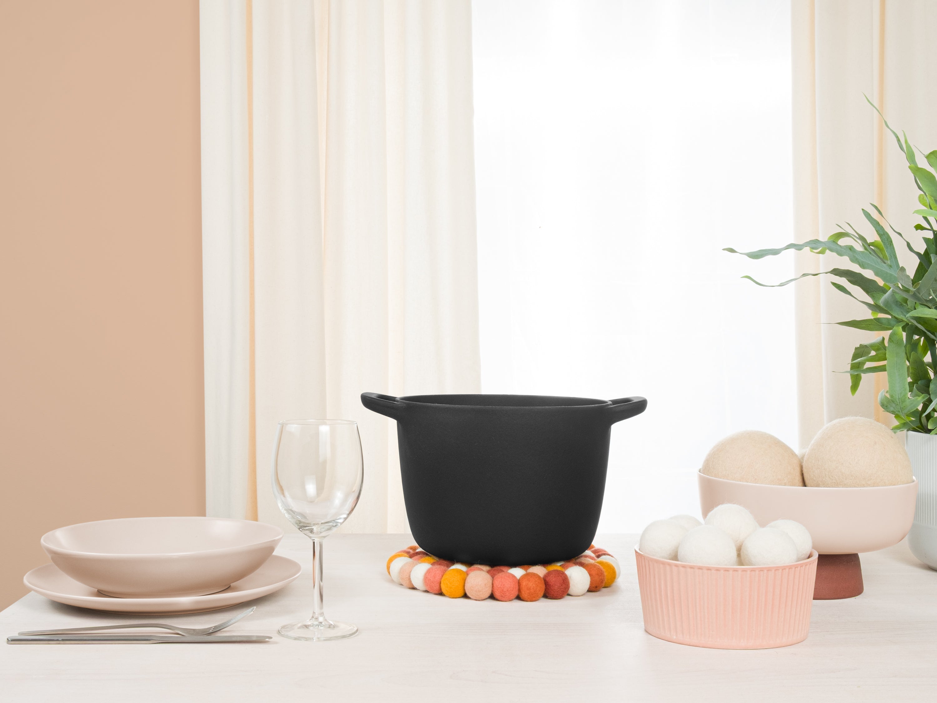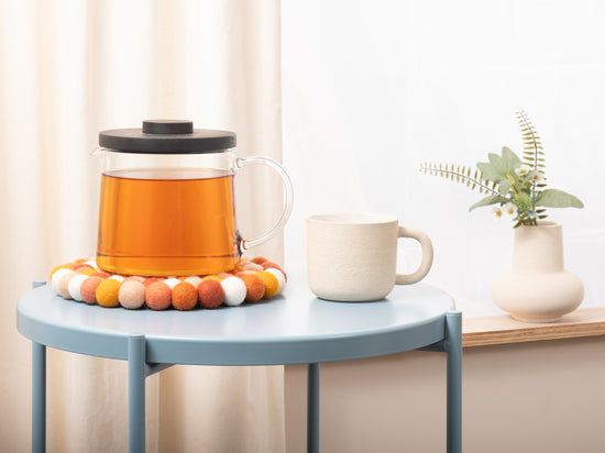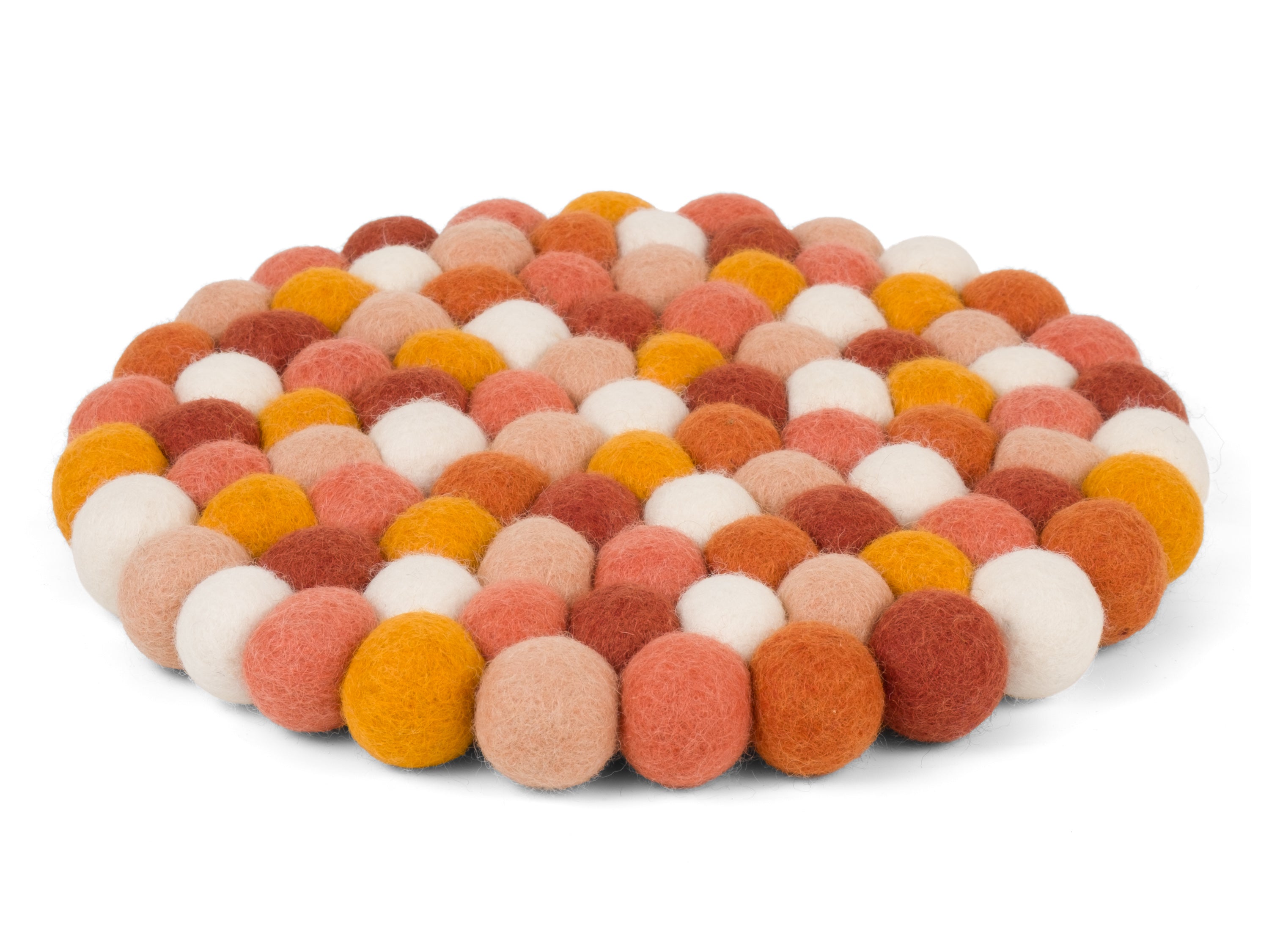 The trivet Juna in the colour multicolour combines functionality with charming design. Robust, heat-resistant, water- and dirt-repellent, and reversible. Made from pure new wool, handcrafted in Nepal under fair conditions.