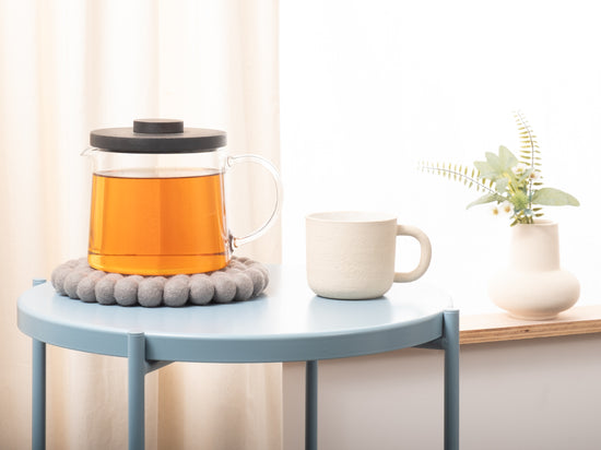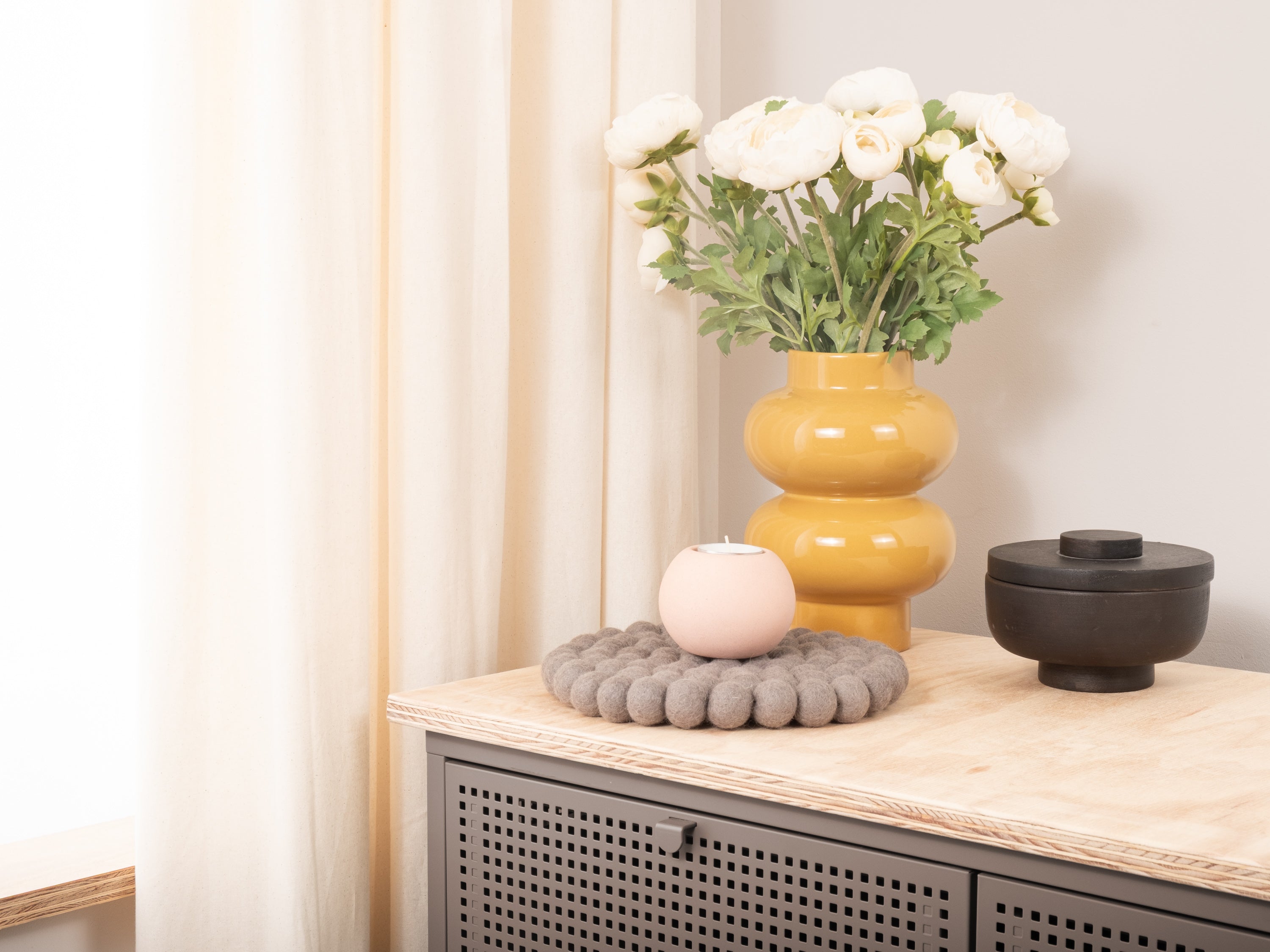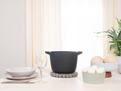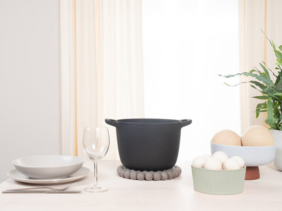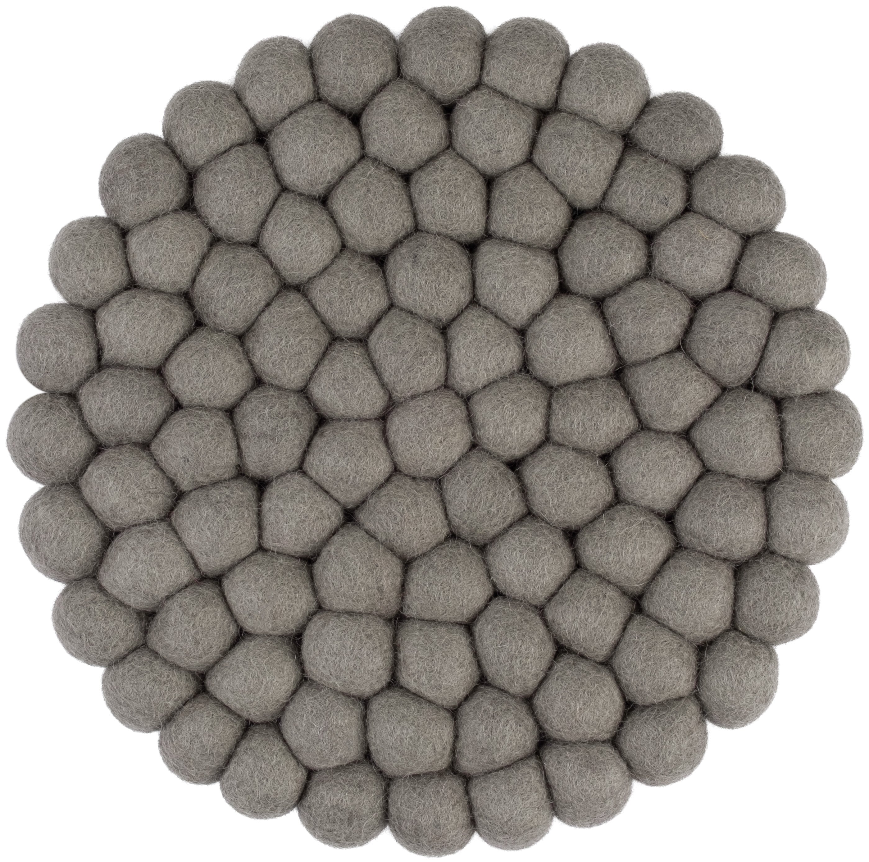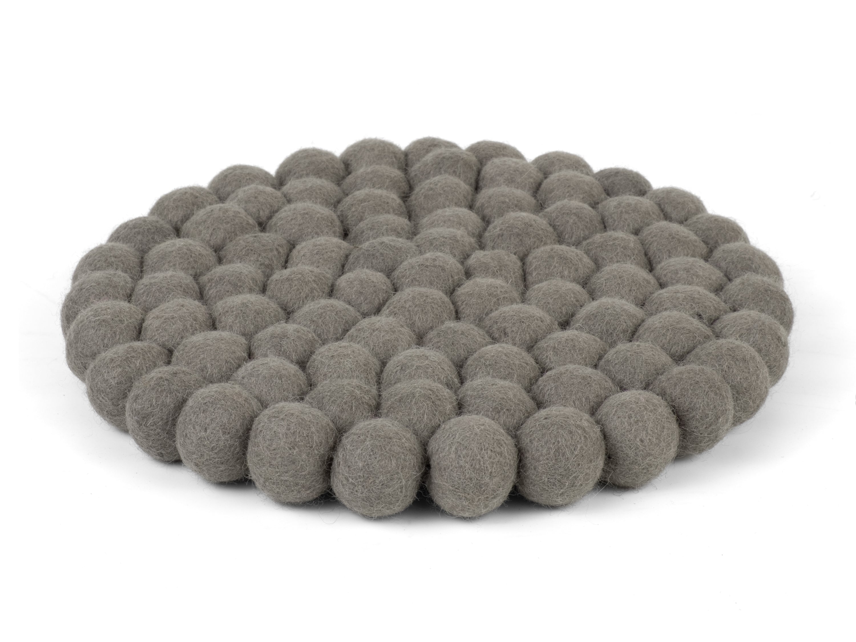 The trivet Kian in the colour grey combines functionality with charming design. Robust, heat-resistant, water- and dirt-repellent, and reversible. Made from pure new wool, handcrafted in Nepal under fair conditions.
