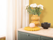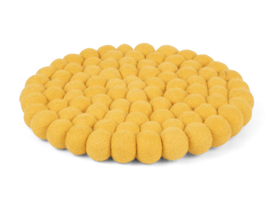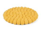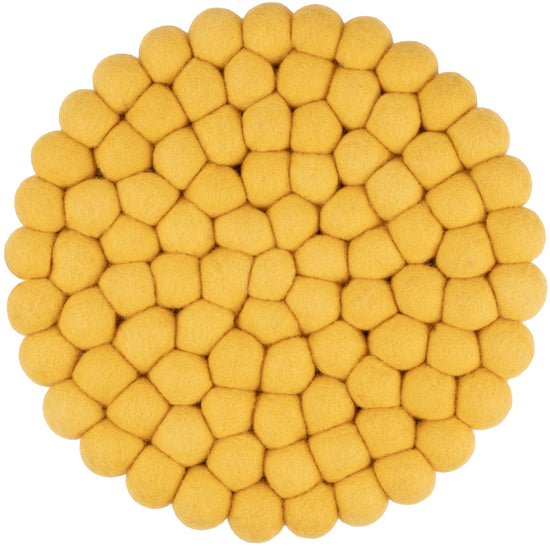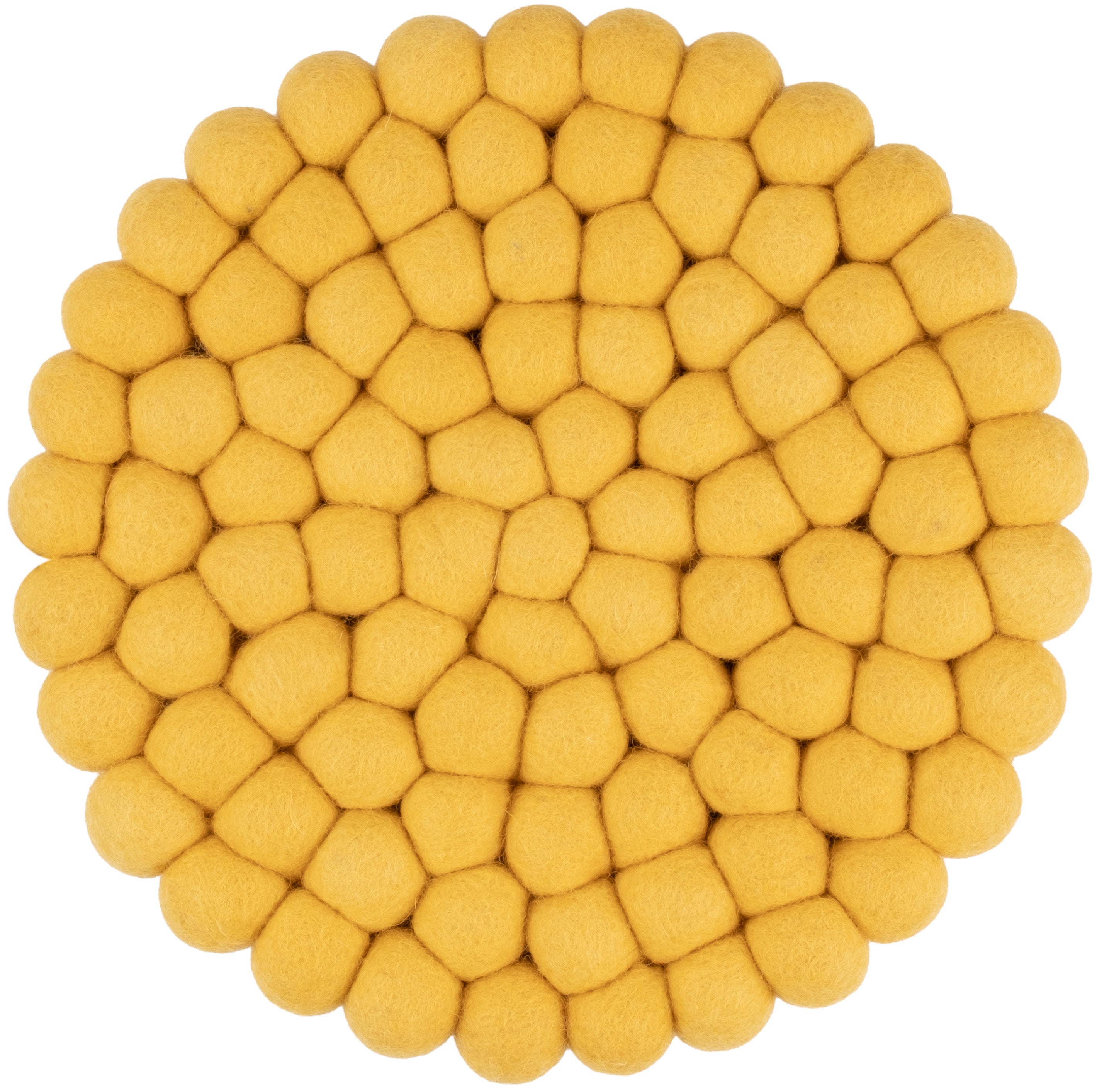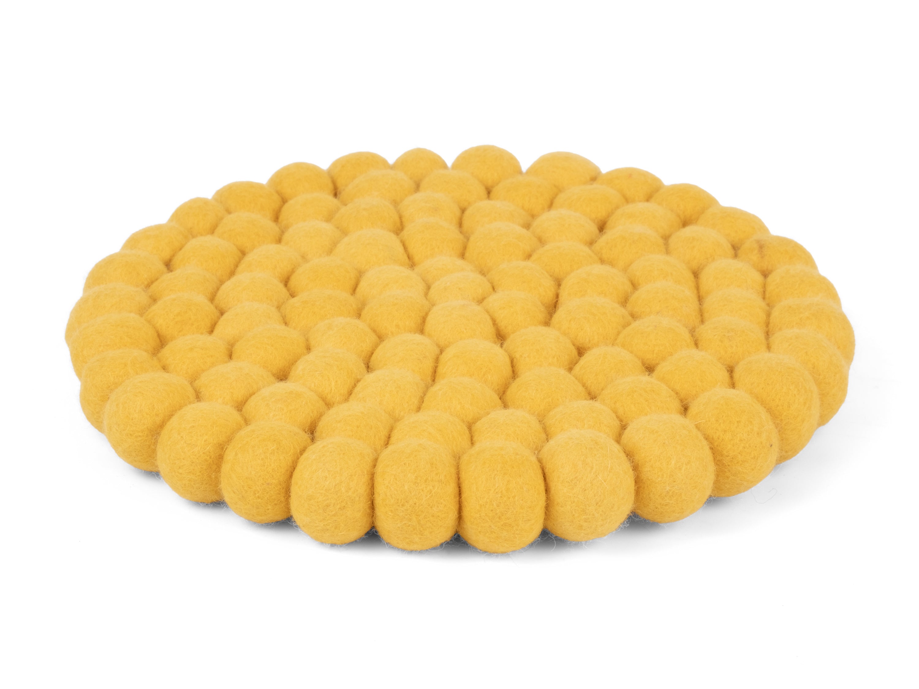 The trivet Kira in the colour yellow combines functionality with charming design. Robust, heat-resistant, water- and dirt-repellent, and reversible. Made from pure new wool, handcrafted in Nepal under fair conditions.