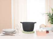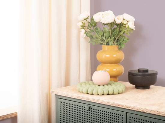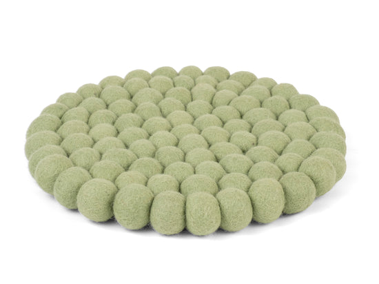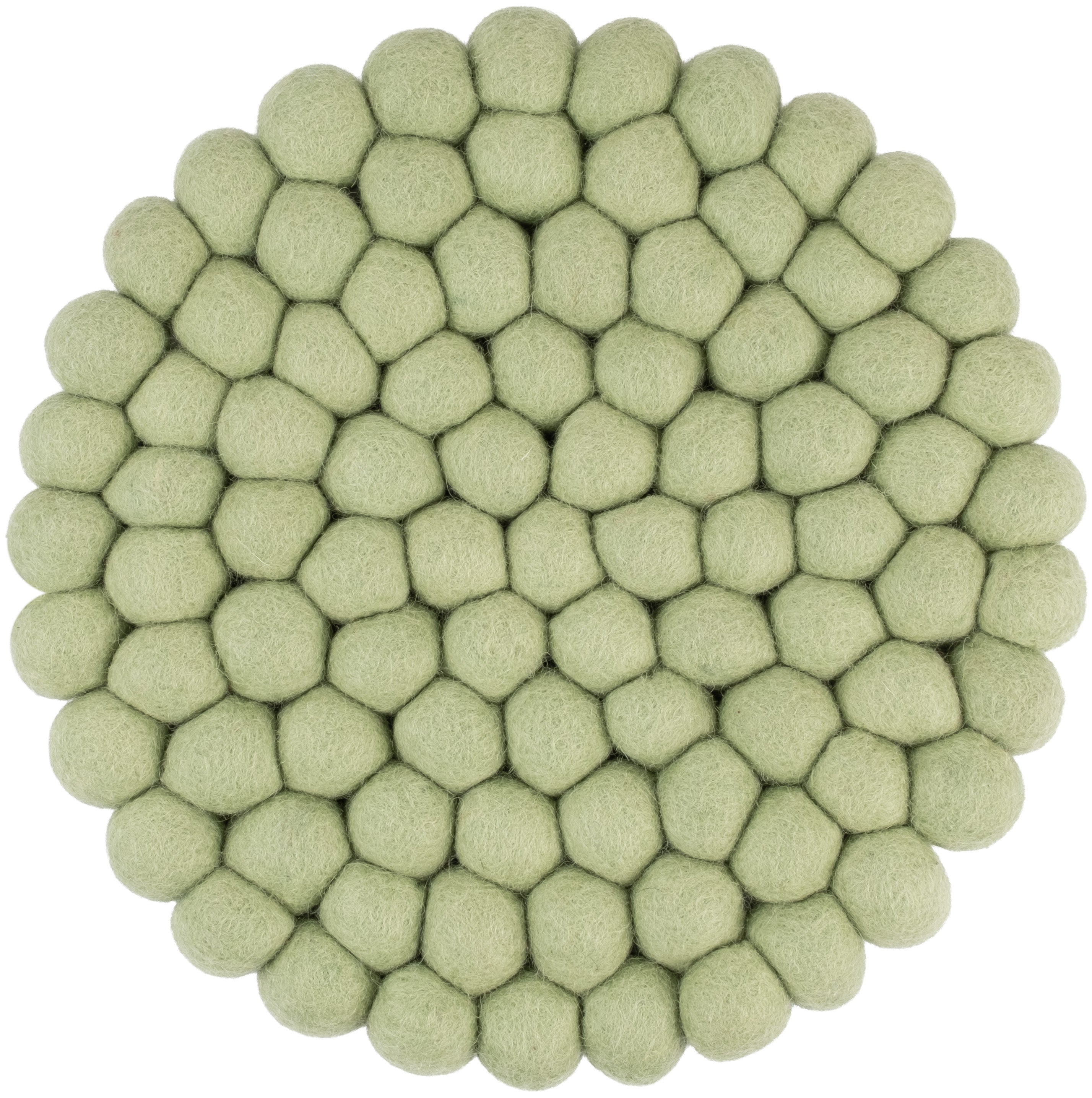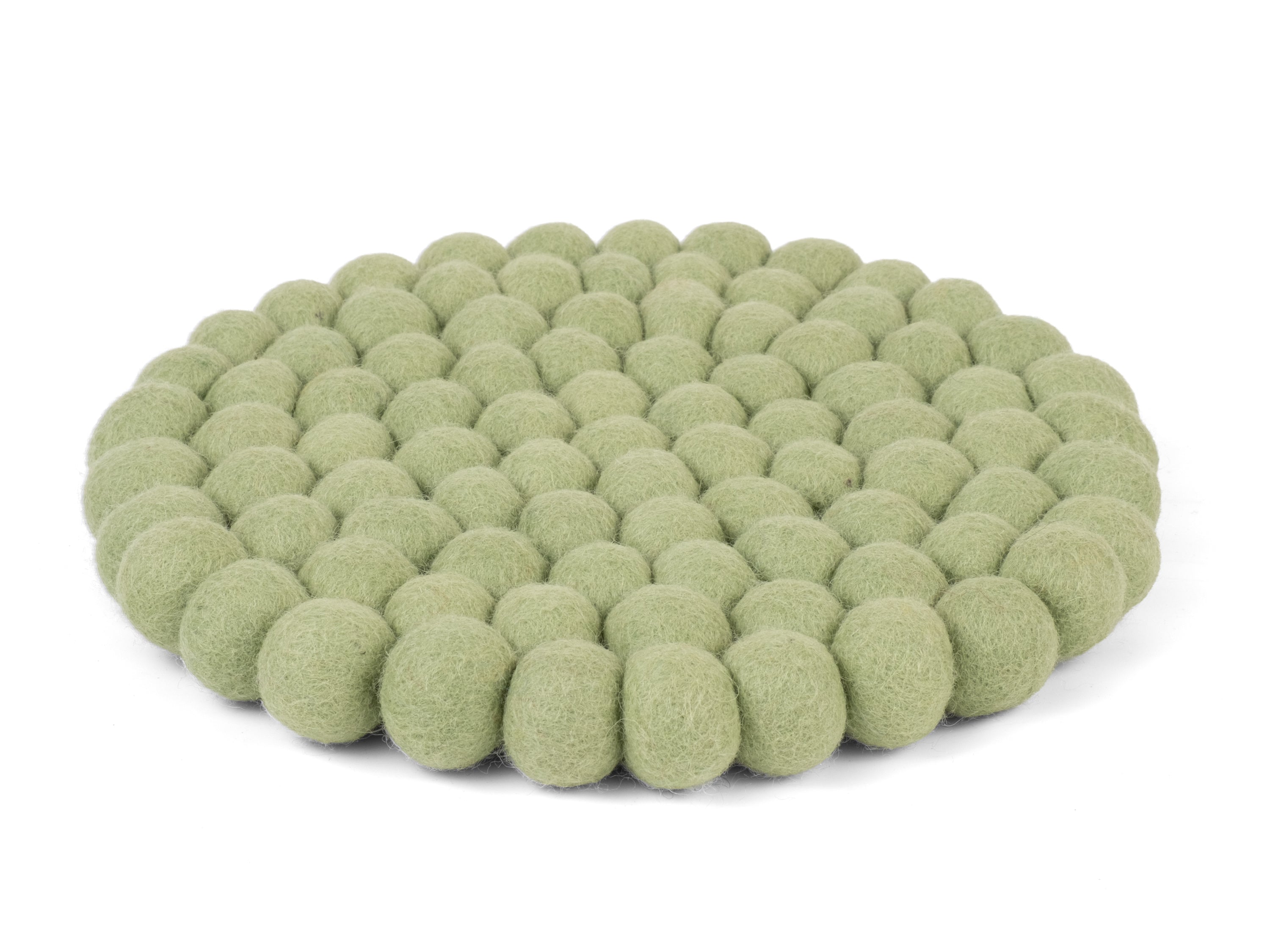 The trivet Lasse in the colour light green combines functionality with charming design. Robust, heat-resistant, water- and dirt-repellent, and reversible. Made from pure new wool, handcrafted in Nepal under fair conditions.