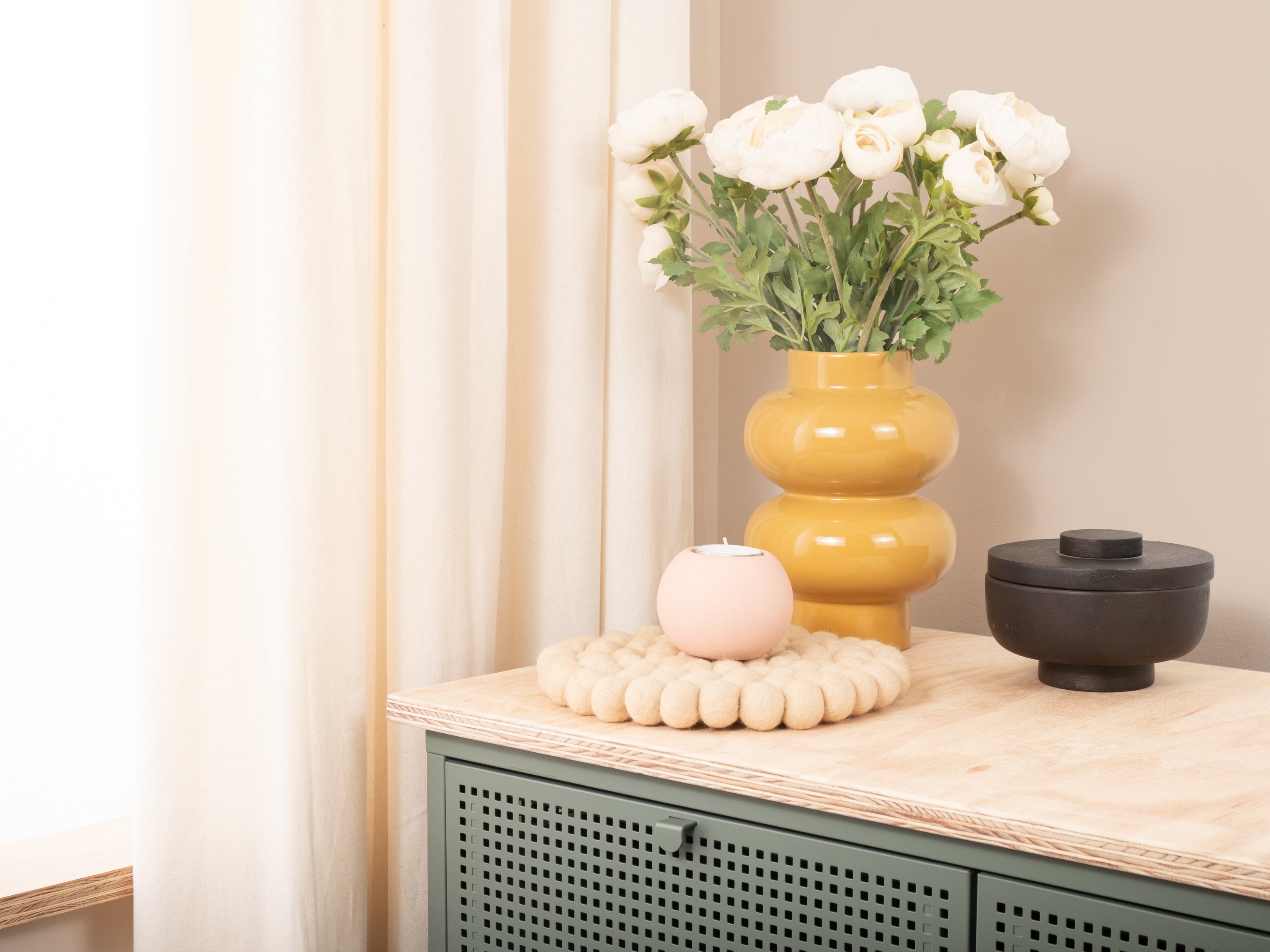 Round, beige trivet made of pure new wool | myfelt