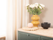 The trivet Levi in the colour beige combines functionality with charming design. Robust, heat-resistant, water- and dirt-repellent, and reversible. Made from pure new wool, handcrafted in Nepal under fair conditions.