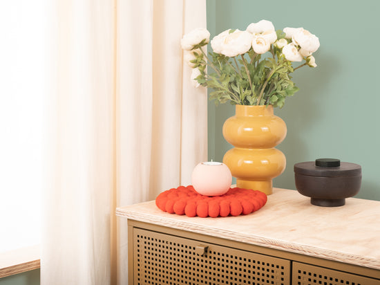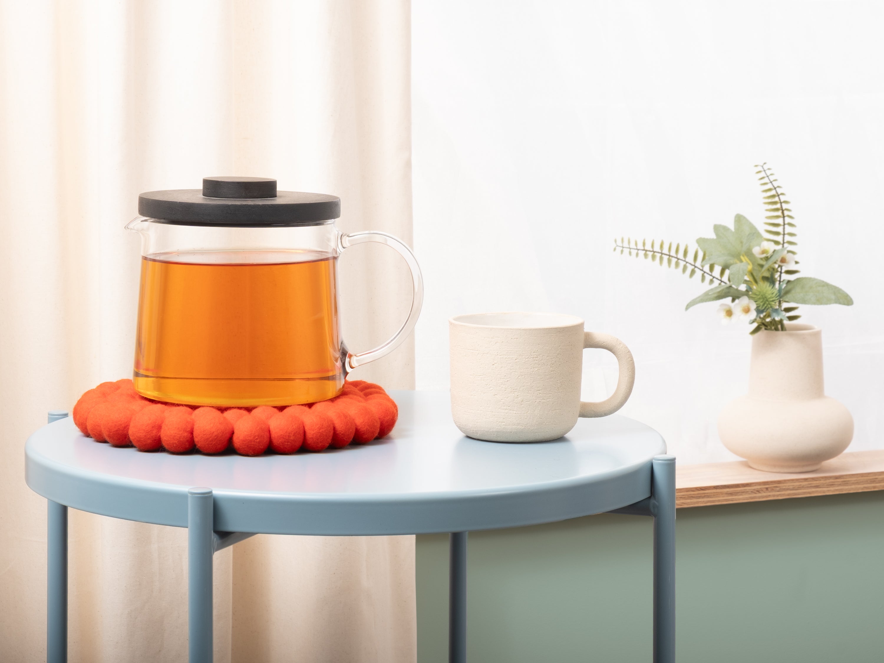The trivet Mats in the colour red-orange combines functionality with charming design. Robust, heat-resistant, water- and dirt-repellent, and reversible. Made from pure new wool, handcrafted in Nepal under fair conditions.