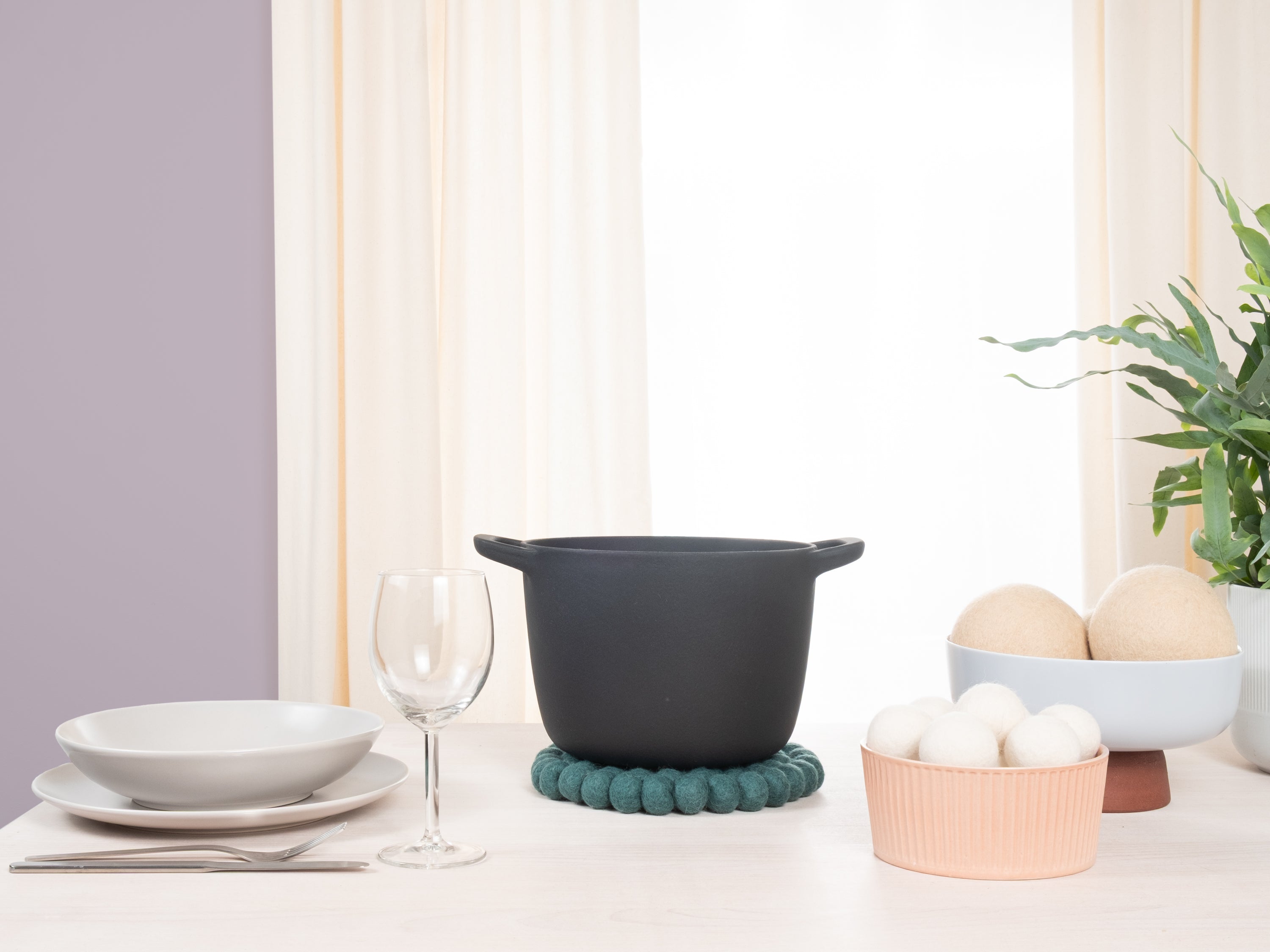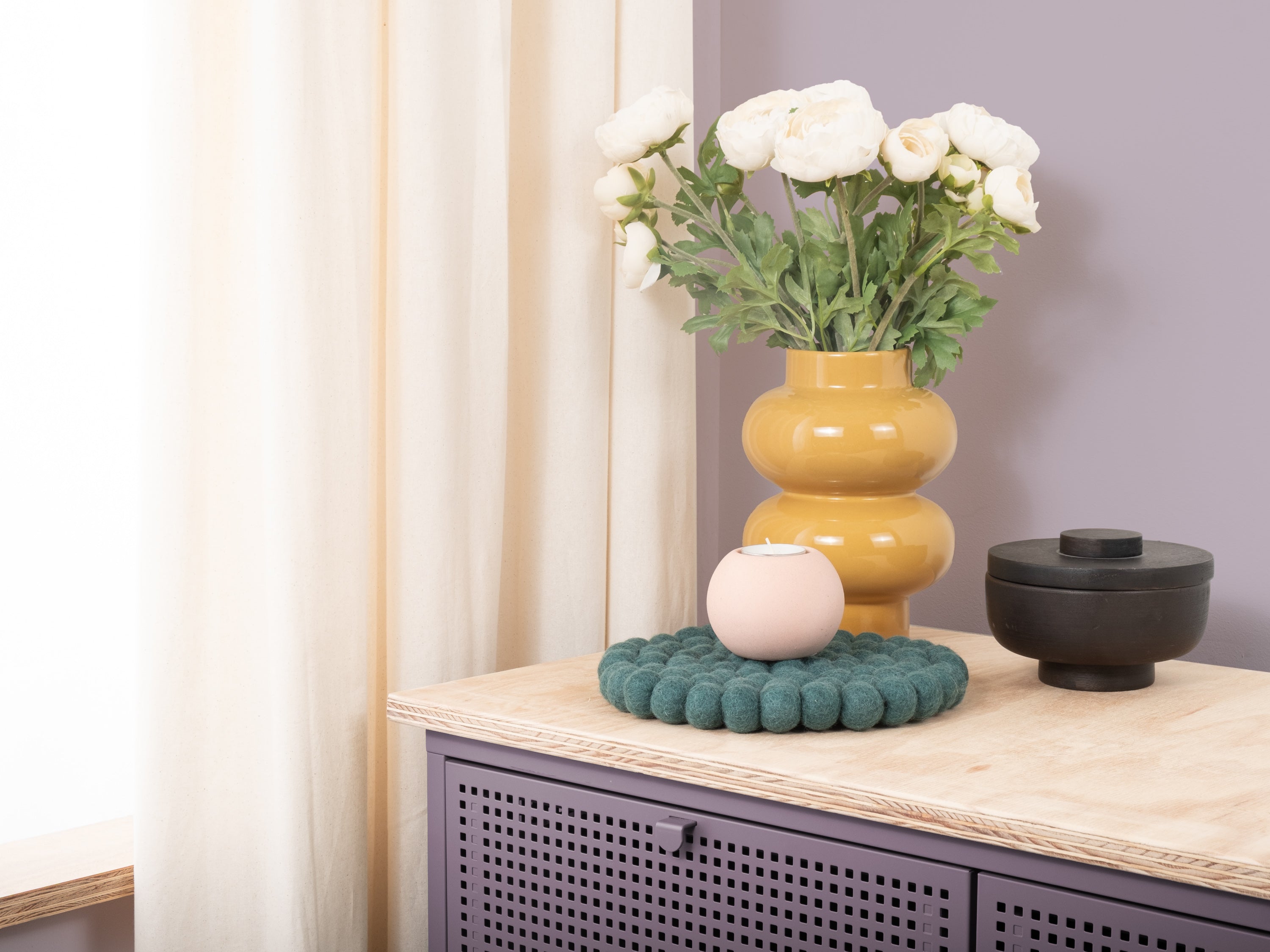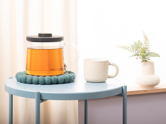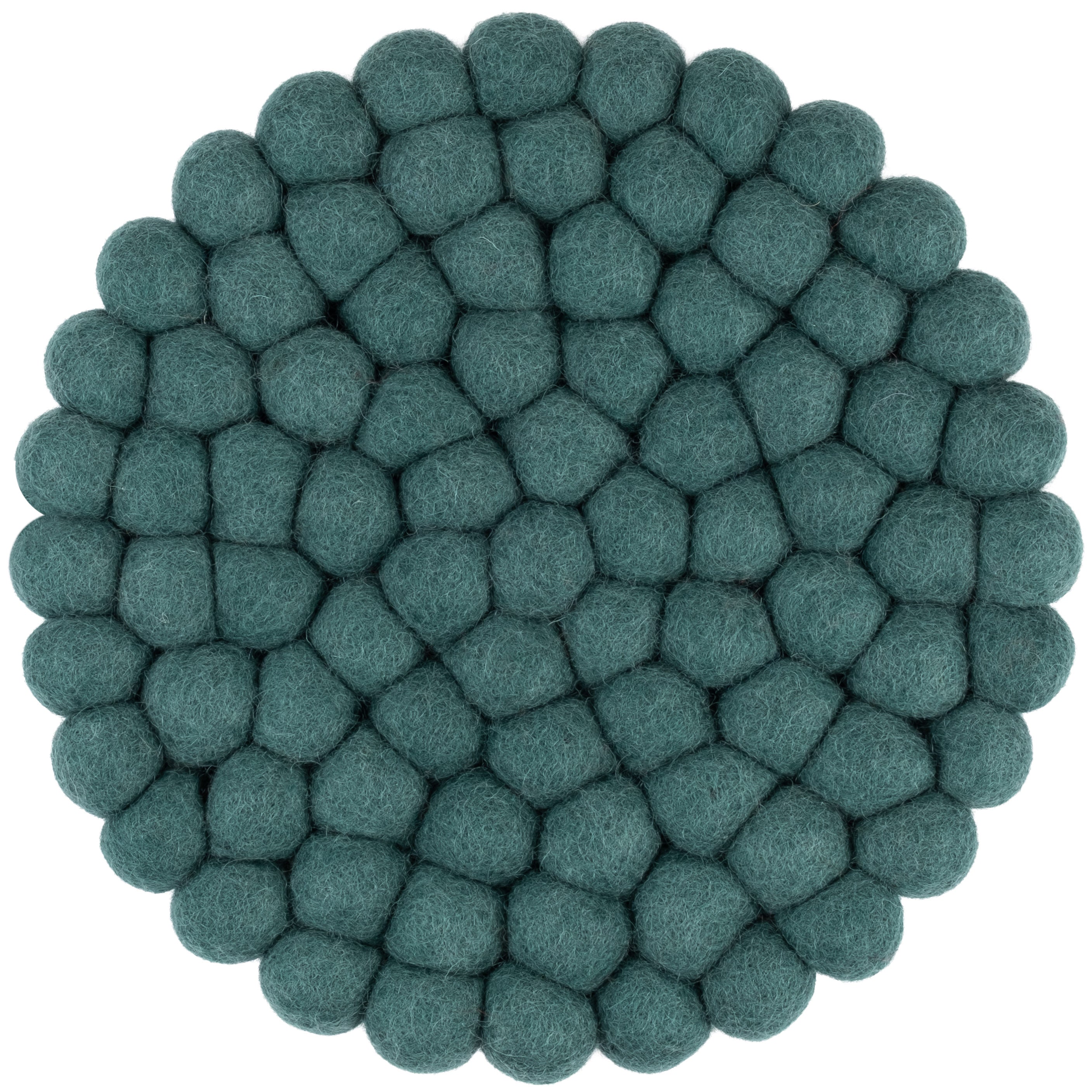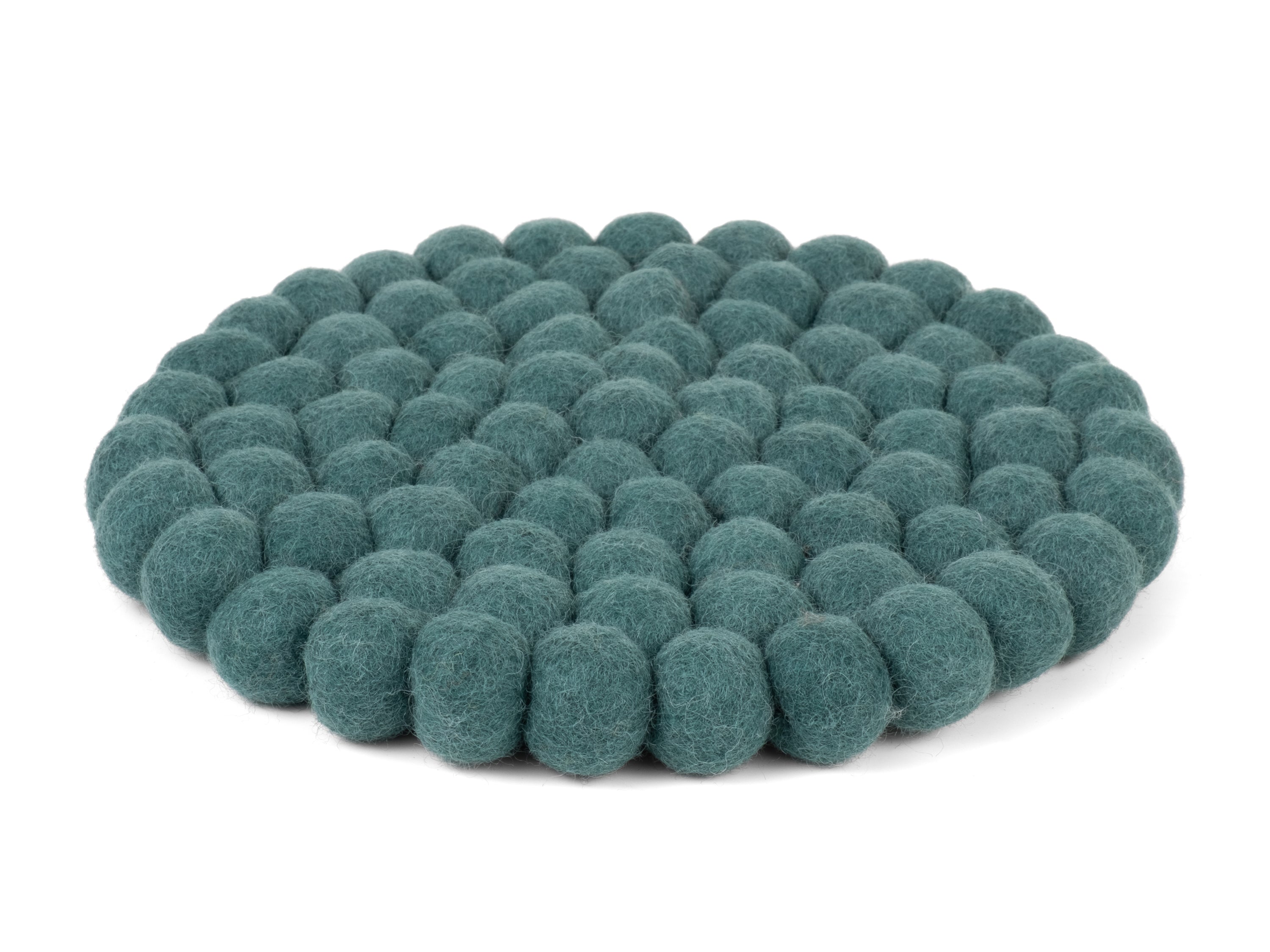 Round, petrol-coloured trivet made of pure new wool | myfelt