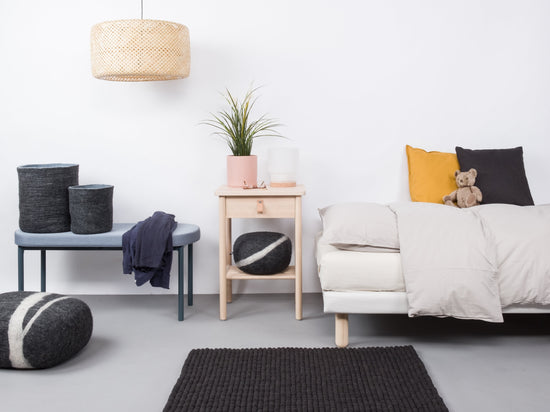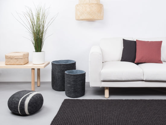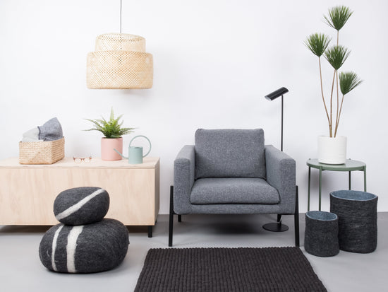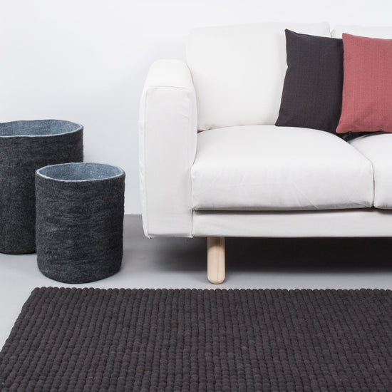 A rich anthracite colour makes Kuno a stylish eye-catcher in any home. The modern look and timelessly classic colour scheme make Kuno an aesthetic all-rounder. Whether deliberately set in contrast to the interior or as part of the living composition - the carefully handcrafted Kuno is both an eye-catcher and a classic design accessory. Its tangibly passionate character is perfectly reflected in the felt ball rug and felt rug variants as well as in various shapes. Kuno - purist understatement in perfection.