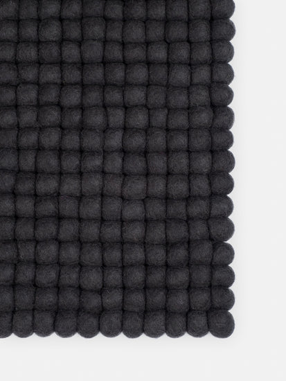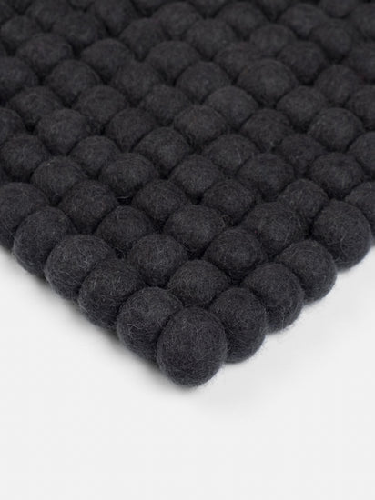 Rectangular, anthracite-coloured felt ball rug made from pure new wool.