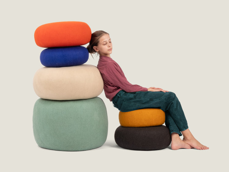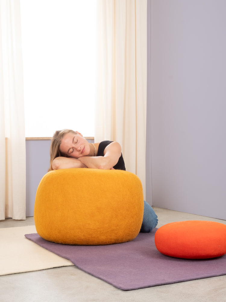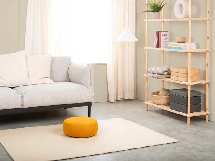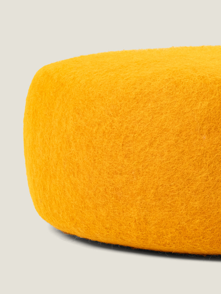 The ochre-yellow Risa pouf is an all-round handy and practical seat. As a high-quality natural product, the stool is elaborately felted by hand in many layers and consists of 100% finest new wool (pure wool filling without polyester or synthetics). Whether as a meditation and seat cushion or a high-quality design element, it is the perfect addition to any living space. With its unique design, versatility and high level of comfort, it not only offers additional seating, but also gives living spaces a stylish touch. Thanks to its full wool felt filling, the pouf is water and dirt repellent and offers optimal strength.